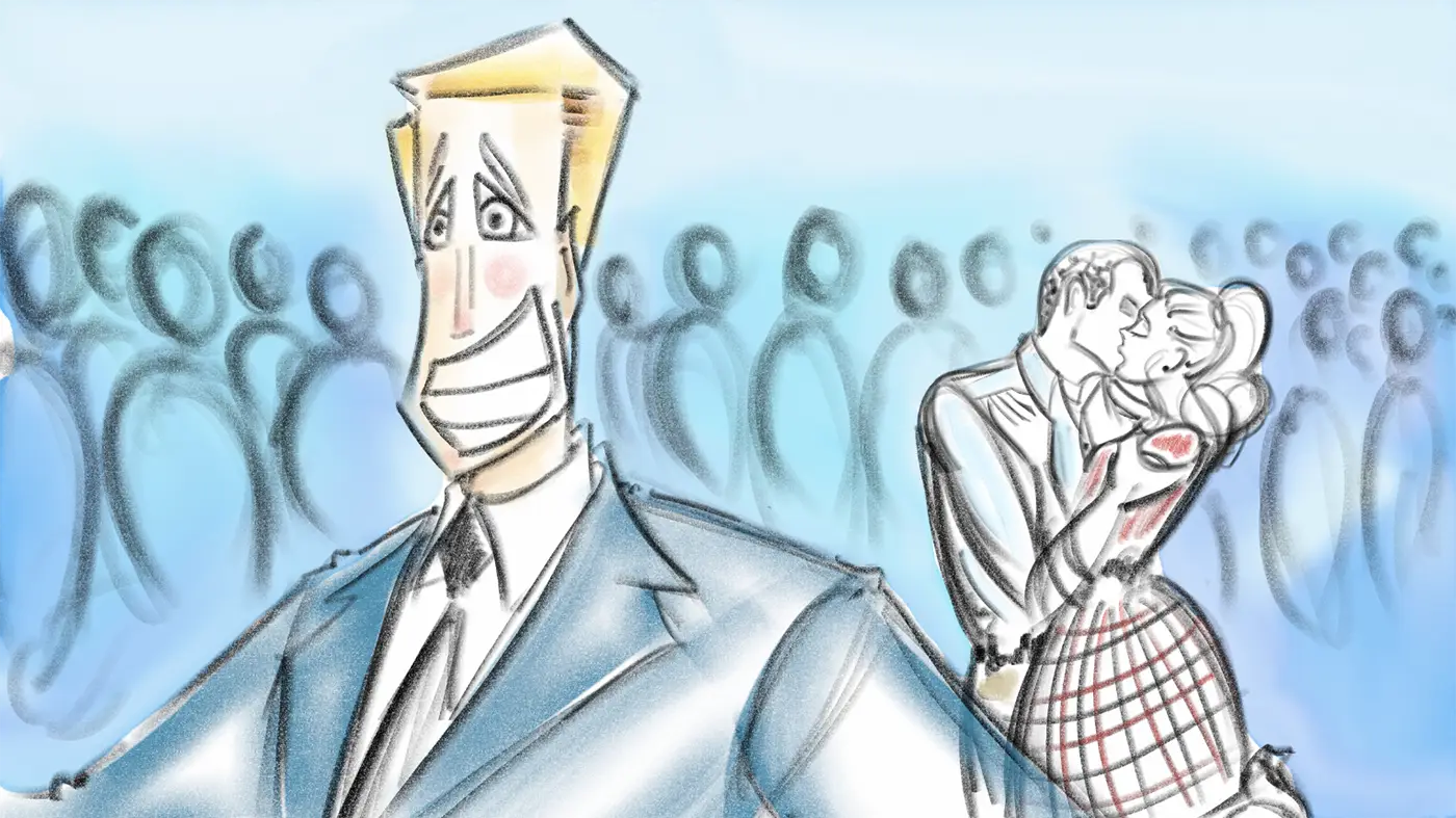 (Pauses as they go in for the kiss...and...)