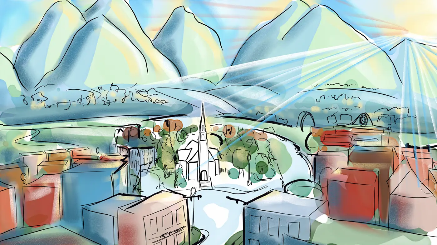 (Rays of sunlight start spreading over the mountains)