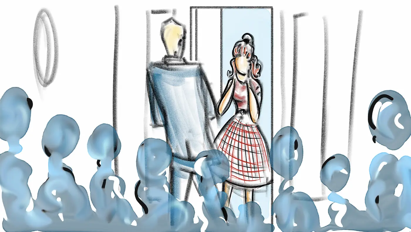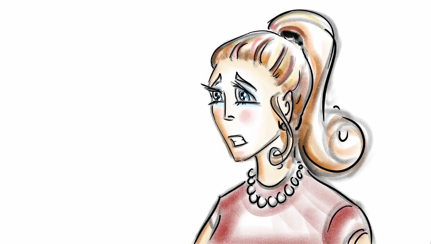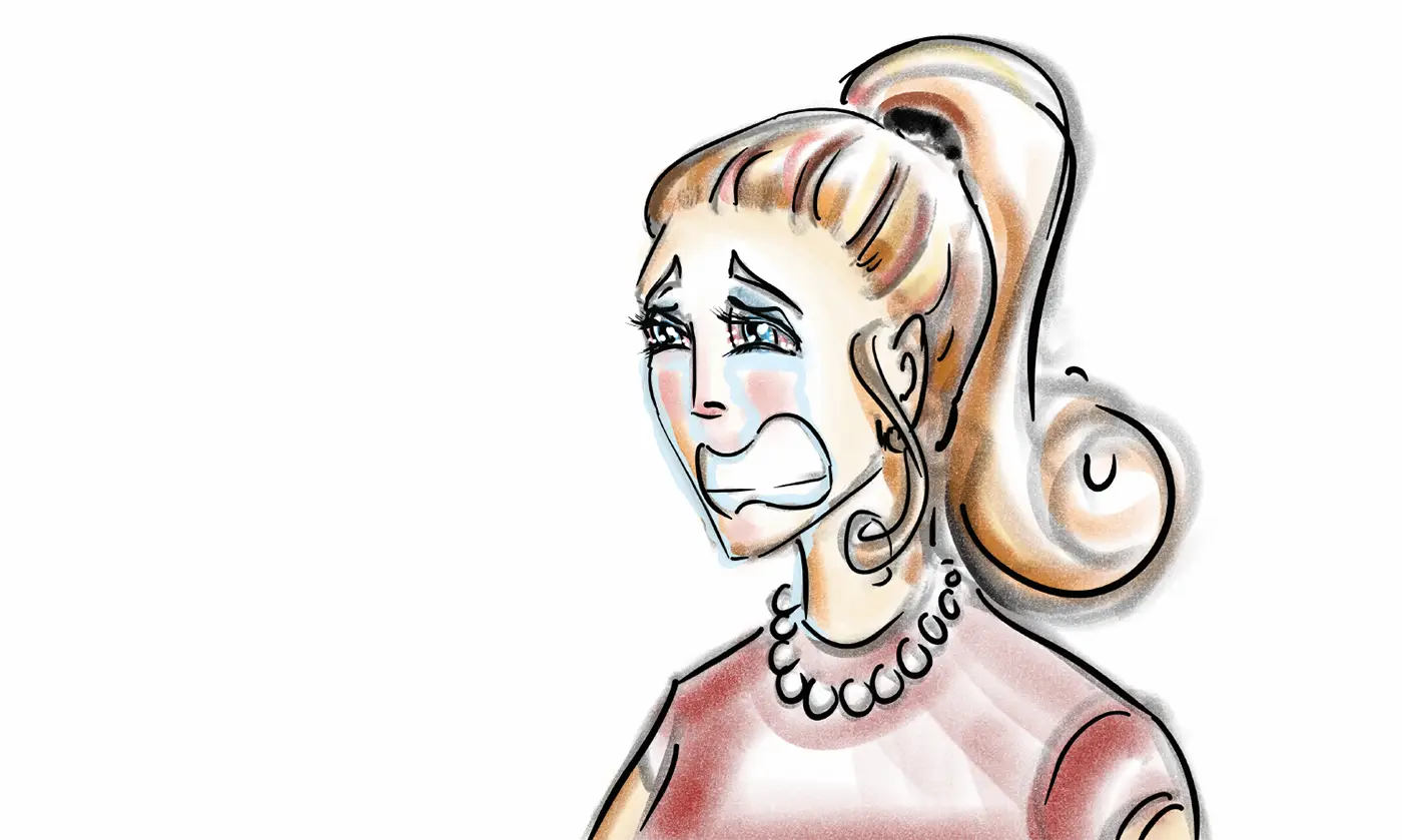 (Puts her mirror away and closes her little clutch)