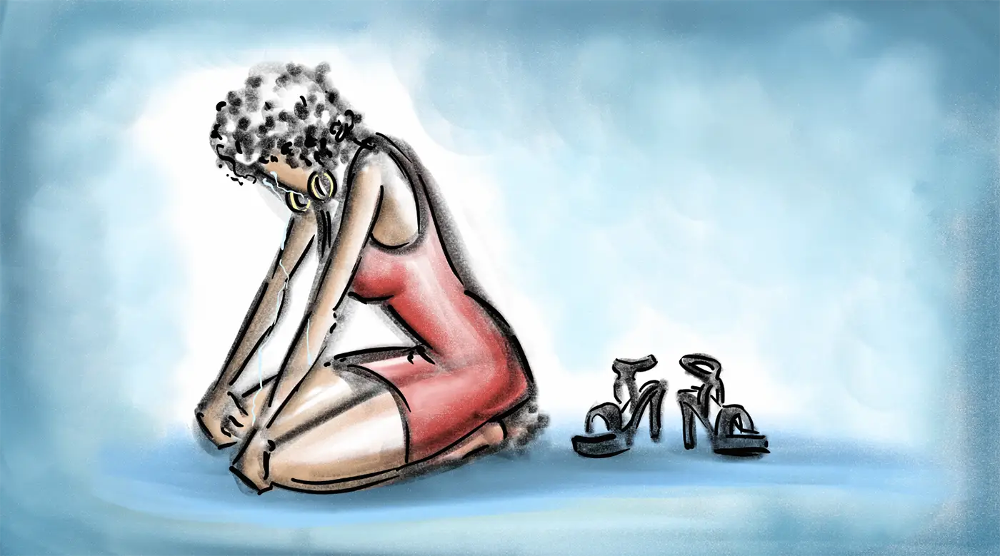 (And still sees the smeared makeup and bruises on her face)