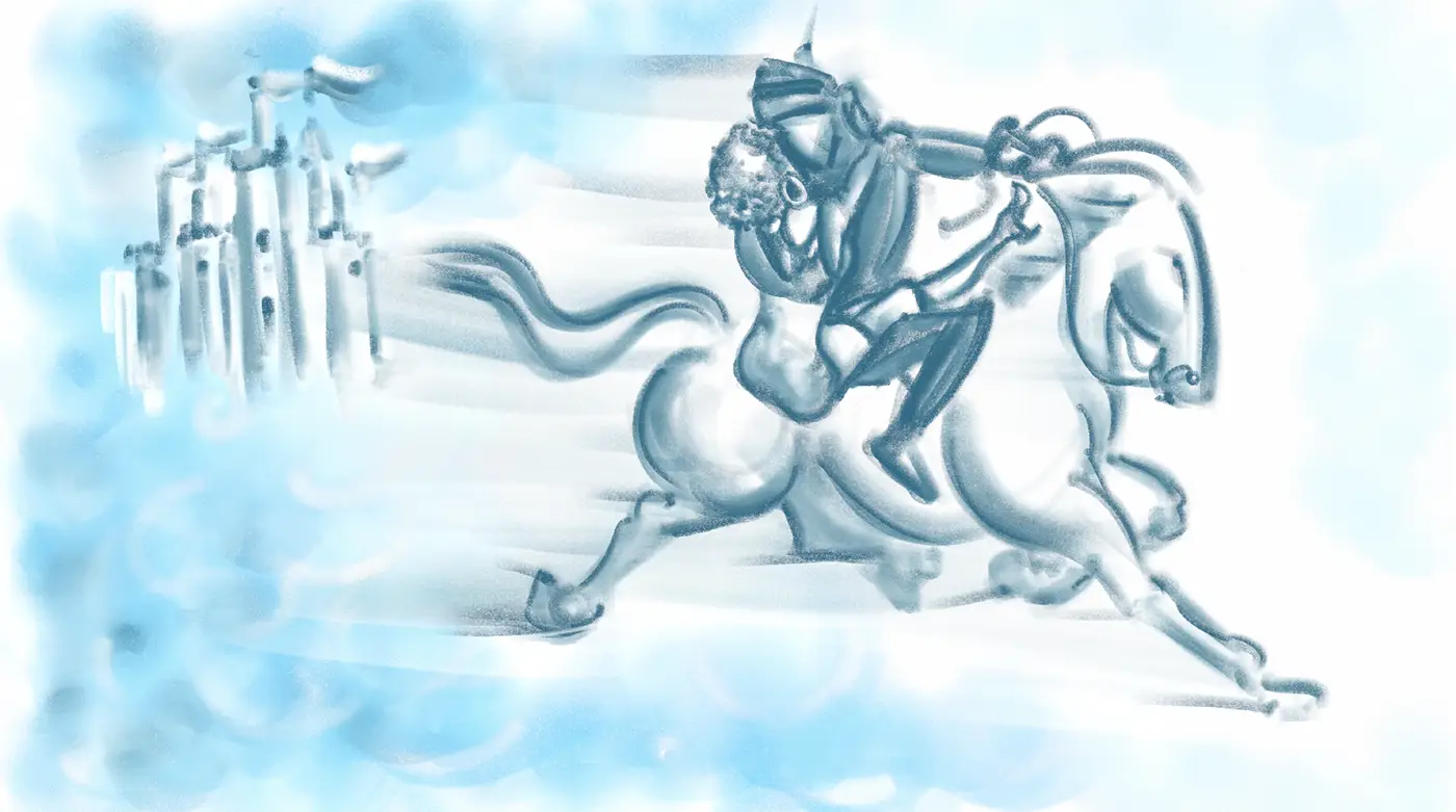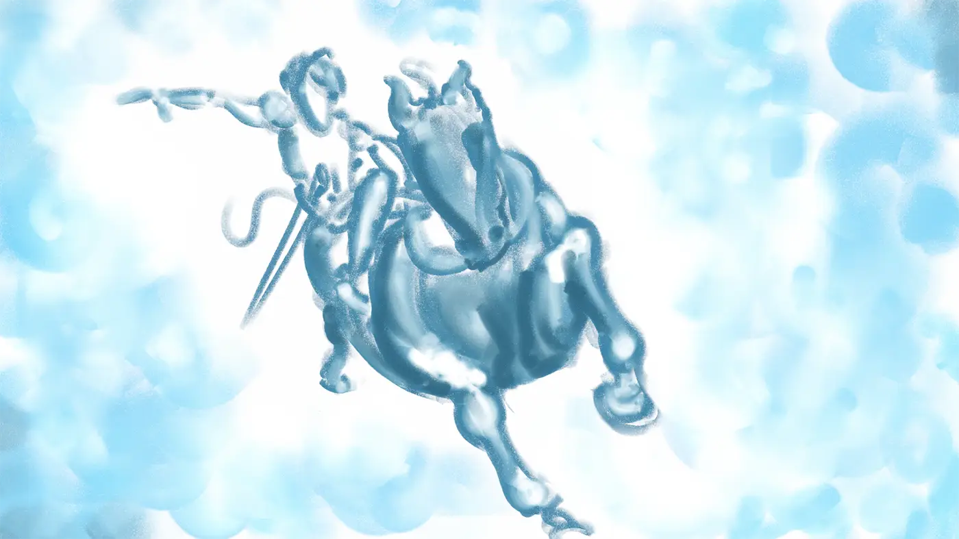 (...somewhere up towards the clouds beyond the mountains the silhouette of a knight can be seen riding towards a castle…)
