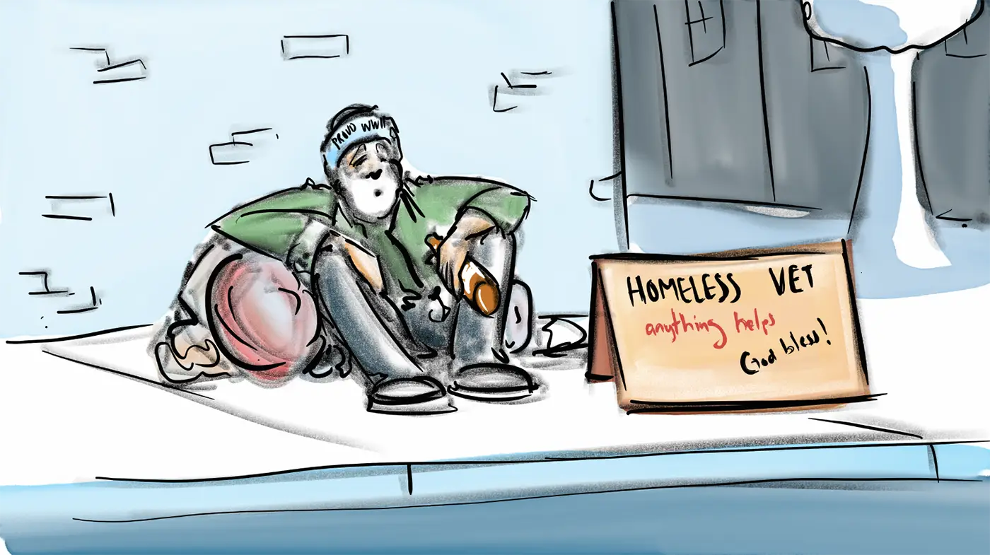 SEAMUS SONNES (the homeless vet):