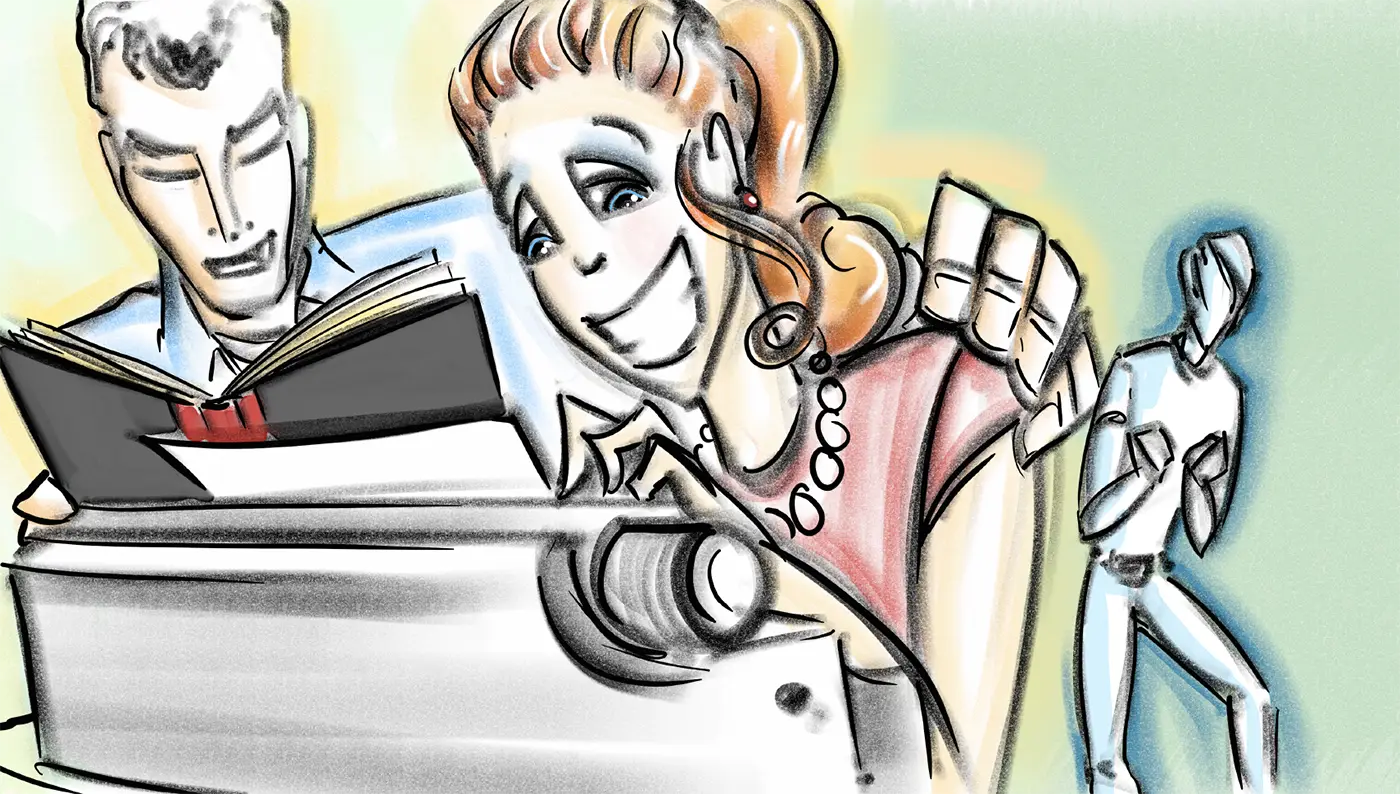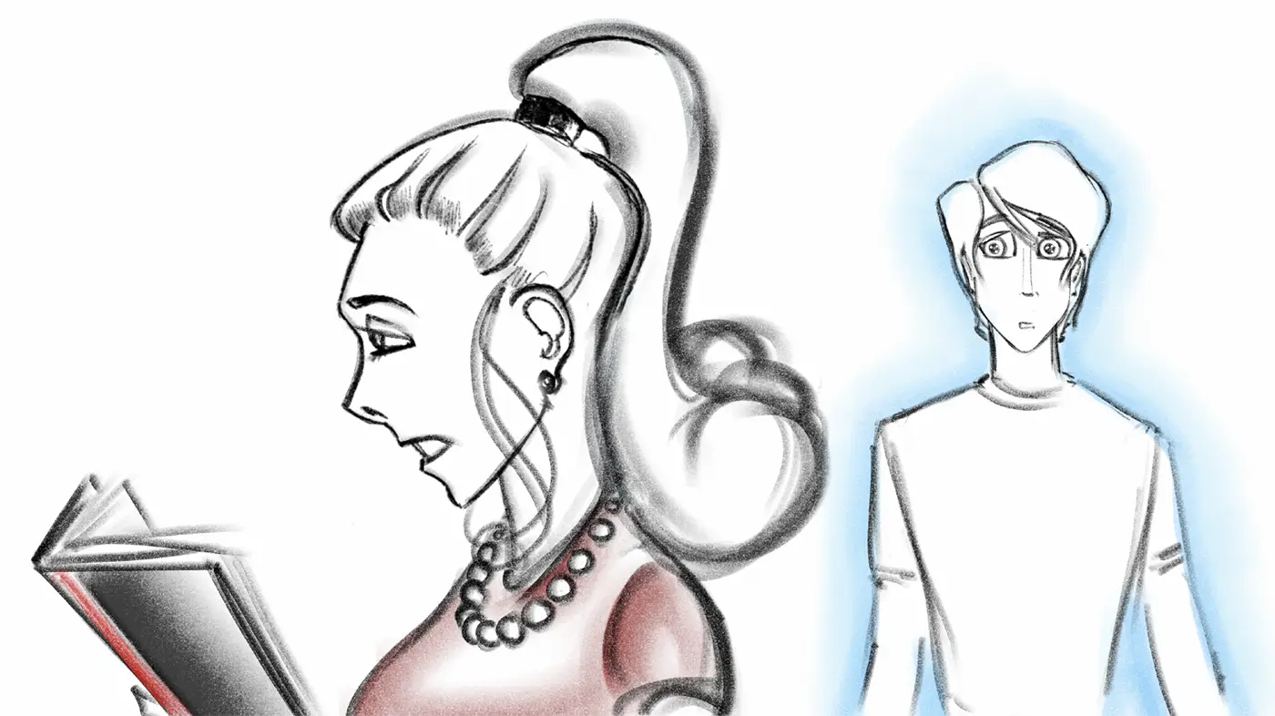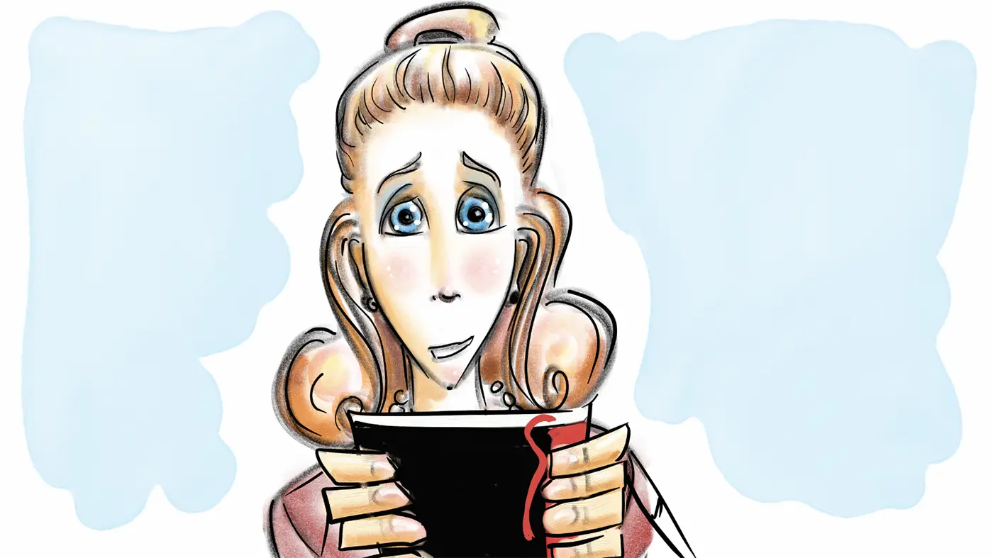 (closing the book she’s reading…)