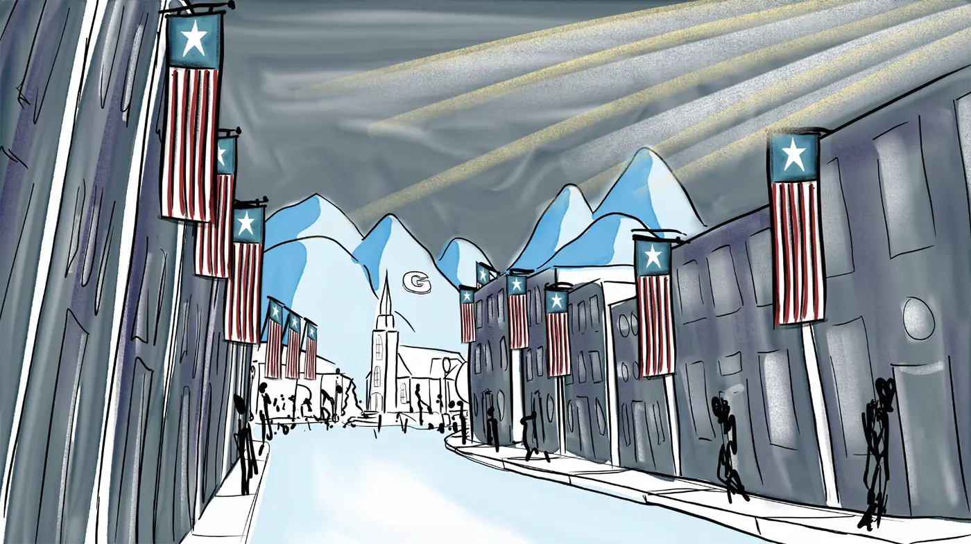 (Alden watches on from the “G” on the mountain)