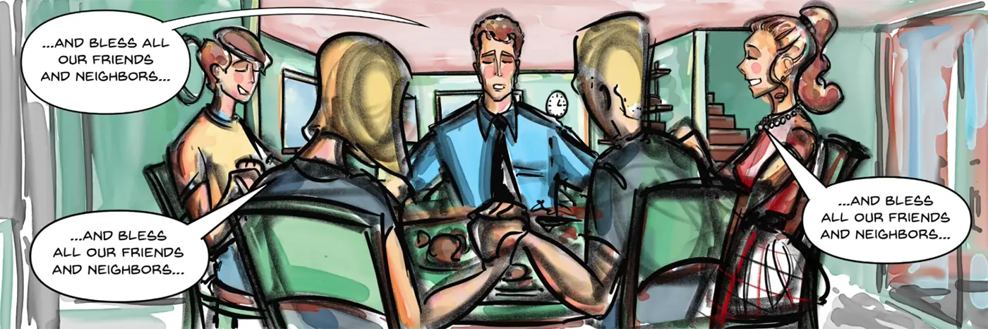 (...with their remaining kids and their loving neighbors - “cookies, jam, and homemade bread!”)