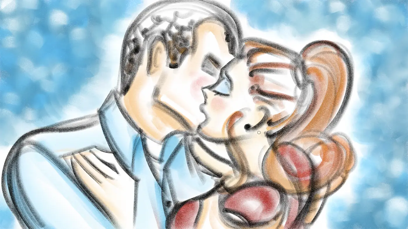 (As the guitar starts coming in, Doyle and Marcella emerge from their walk down memory lane but remain locked in their kiss)
