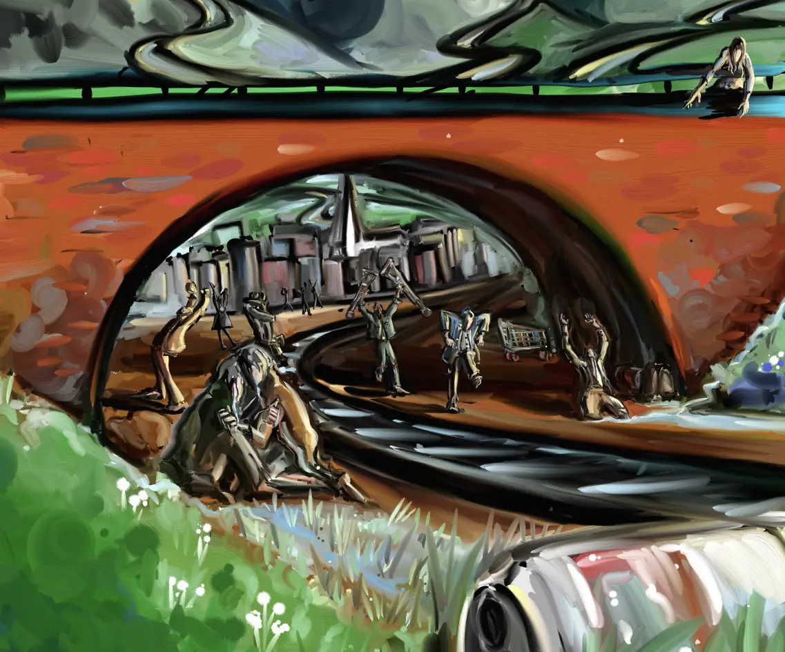 (Fade up to the gloomy town)